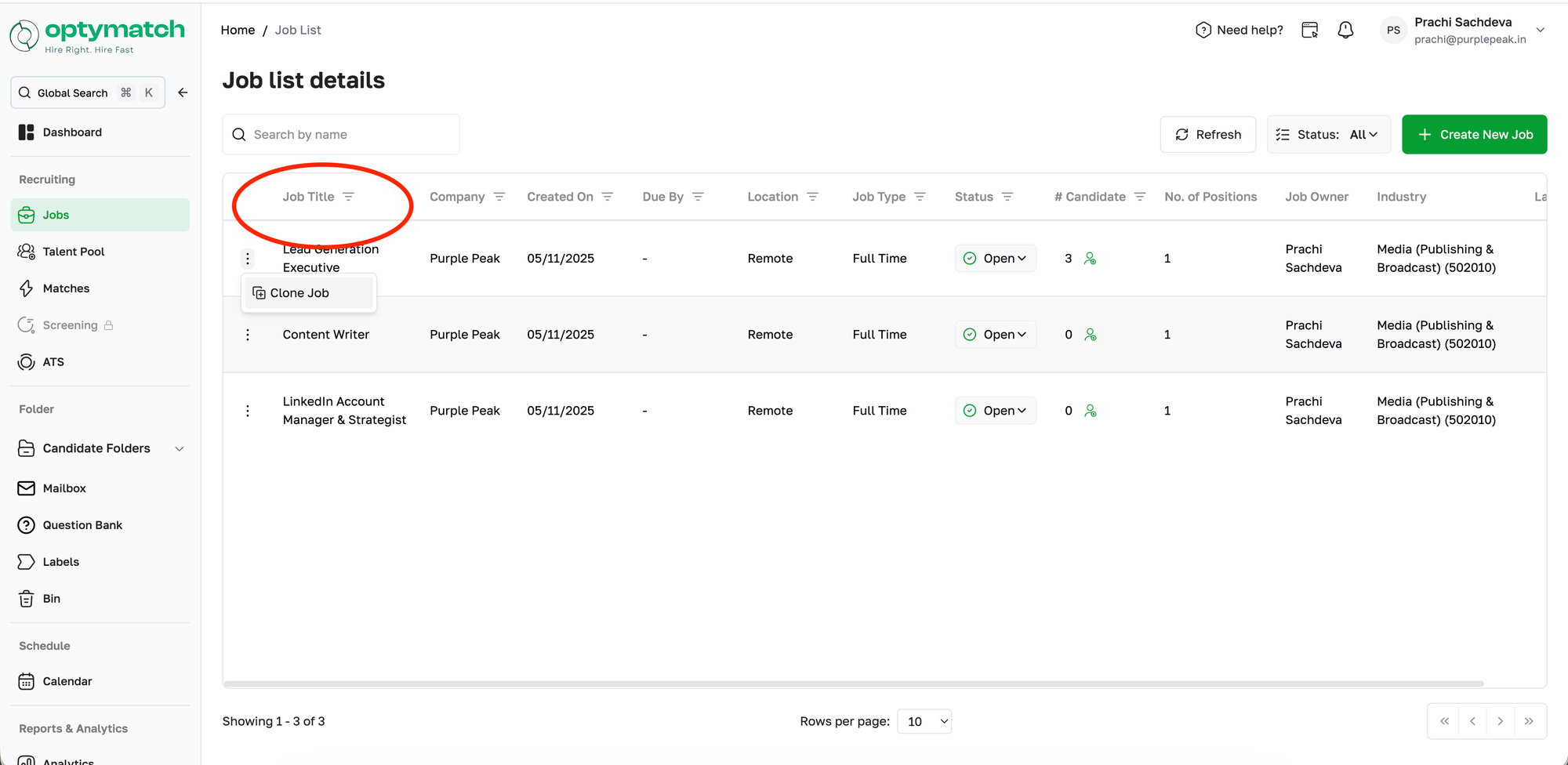 If you are hiring for the same position again (e.g., after 3 months), you can clone an existing job instead of creating one from scratch.